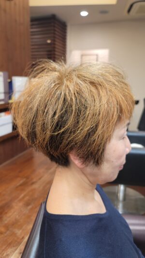 硬毛でくせ毛、エイジング毛のショートヘアです。